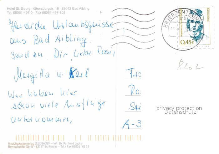 72840092 alte Postkarte Bad Aibling Hotel St Georg Kirche Brunnen Hallenbad postalisch gelaufen Erhaltung siehe scans [WerneD78] KatCode: 11110009187117