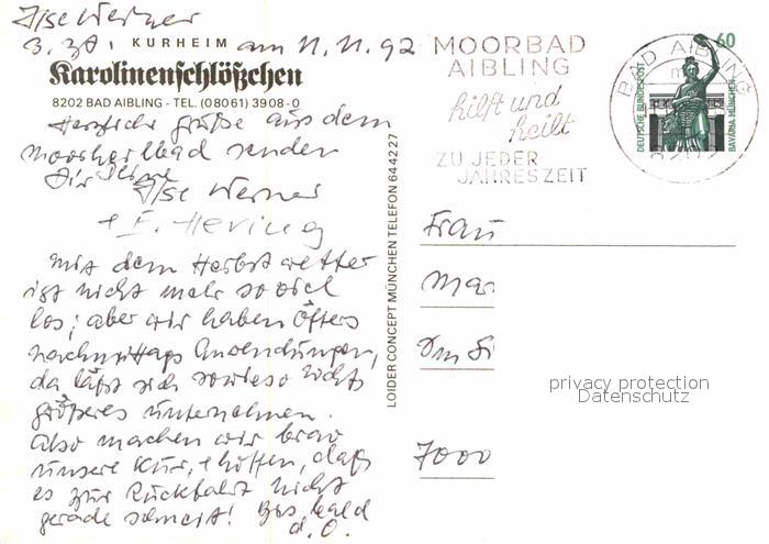 72767223 alte Postkarte Bad Aibling Karolinenschloesschen postalisch gelaufen Erhaltung siehe scans [WerneD78] KatCode: 11110009187117