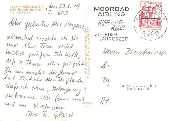 73783818 alte Postkarte Bad Aibling Klinik Wendelstein Alpen postalisch gelaufen Fliegeraufnahme Erhaltung siehe scans [FriedD77] KatCode: 11110009187117