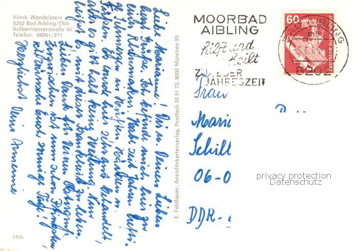 73759343 alte Postkarte Bad Aibling Klinik Wendelstein Sonnenterrasse Empfangshalle Speisesaal Minigolf postalisch gelaufen Erhaltung siehe scans [FriedD77] KatCode: 11110009187117