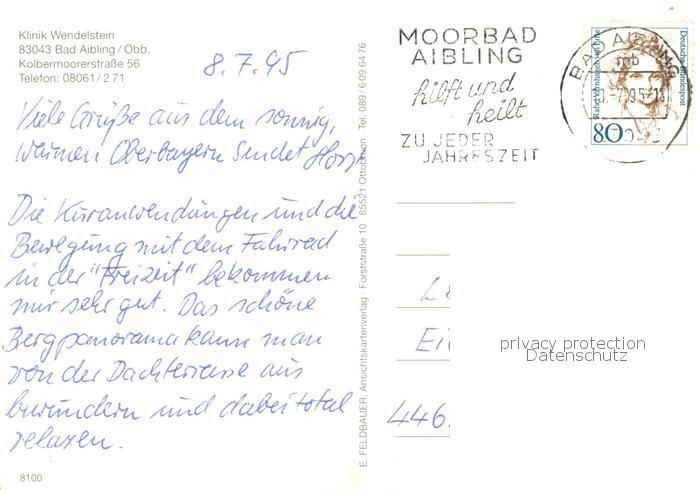 73760428 alte Postkarte Bad Aibling Klinik Wendelstein Speisesaal Empfangshalle Hallenbad postalisch gelaufen Erhaltung siehe scans [FriedD77] KatCode: 11110009187117