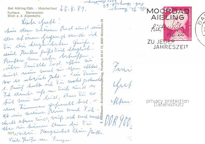 72750703 alte Postkarte Bad Aibling Kurhaus Marienplatz Alpenkette Denkmal postalisch gelaufen Erhaltung siehe scans [KathaD81] KatCode: 11110009187117