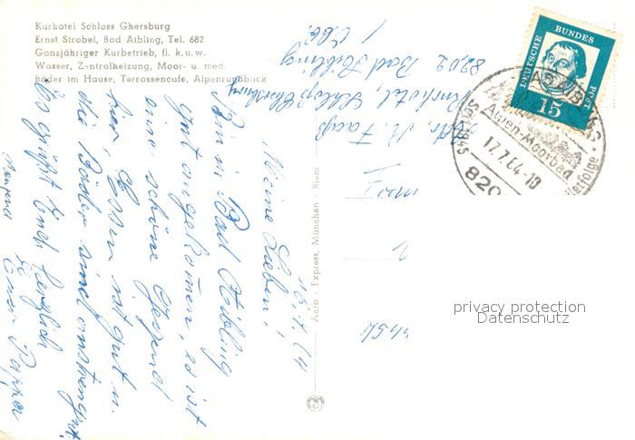73717722 alte Postkarte Bad Aibling Kurhotel Schloss Ghersburg postalisch gelaufen Erhaltung siehe scans [WerneD78] KatCode: 11110009187117
