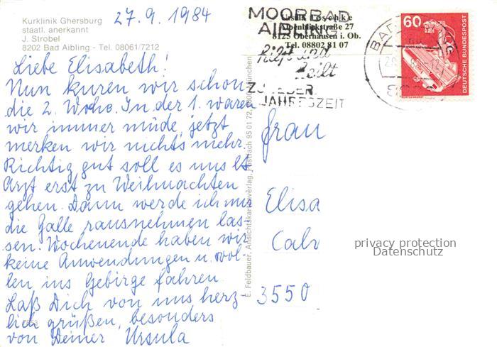 BAD AIBLING Kurklinik Ghersburg Kachelofen Buffet postalisch gelaufen Erhaltung siehe scans [WerneD78] alte Postkarte Wern Katcode 11110009187117
