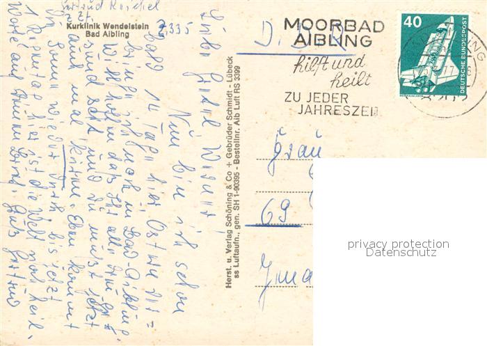 73713878 alte Postkarte Bad Aibling Kurklinik Wendelstein postalisch gelaufen Erhaltung siehe scans [WerneD78] KatCode: 11110009187117