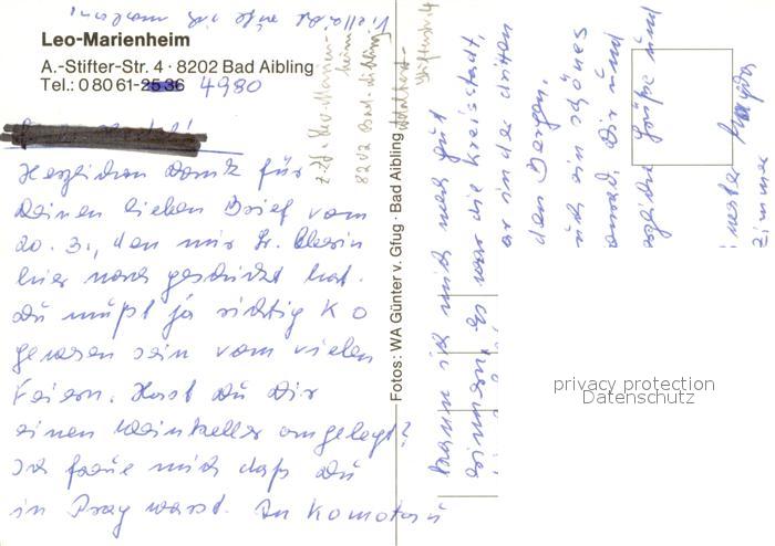 73661709 Bad Aibling Leo Marienheim Kuranwendungen Hallenbad postalisch nicht gelaufen Erhaltung siehe scans [FriedD77] KatCode: 11110009187117