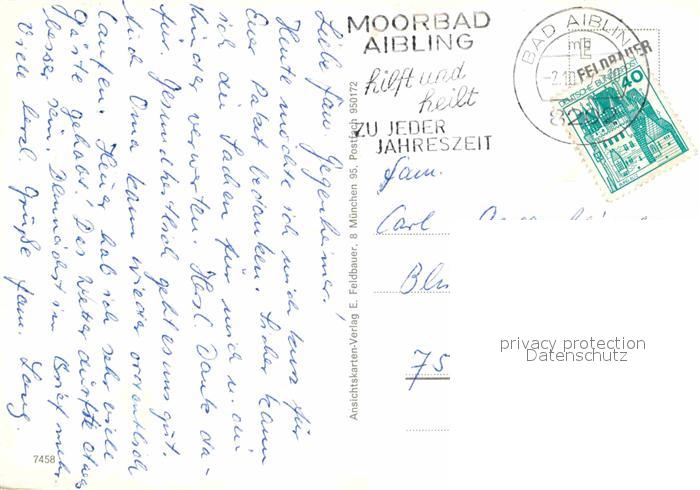 72701074 alte Postkarte Bad Aibling Marktplatz Brunnen Kirchturm Schloss Pferde See Kapelle Alpen postalisch gelaufen Erhaltung siehe scans [FriedD77] KatCode: 11110009187117
