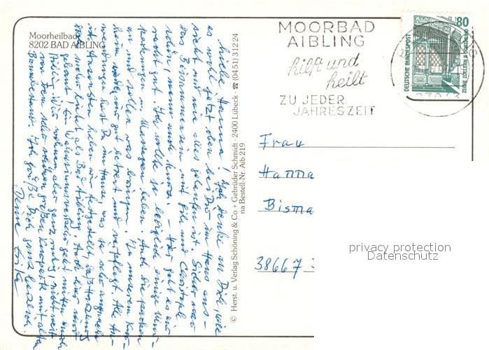 73127290 alte Postkarte Bad Aibling Moorheilbad postalisch gelaufen Erhaltung siehe scans [LiesaD40] KatCode: 11110009187117
