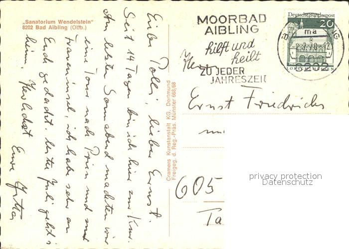72433613 alte Postkarte Bad Aibling Sanatorium Wendelstein Fliegeraufnahme postalisch gelaufen Erhaltung siehe scans KatCode: 11110009187117