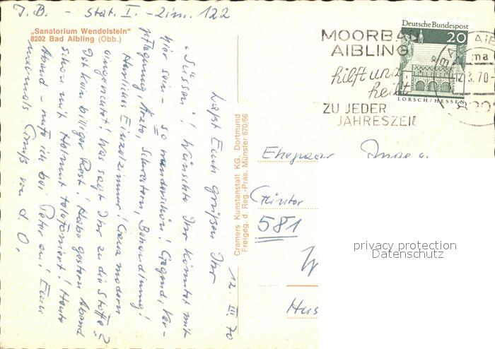 72277381 alte Postkarte Bad Aibling Sanatorium Wendelstein Fliegeraufnahme postalisch gelaufen Erhaltung siehe scans KatCode: 11110009187117