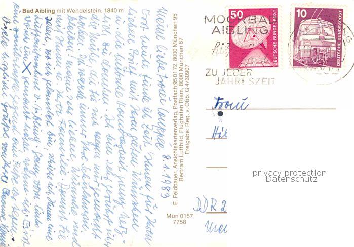 72628403 alte Postkarte Bad Aibling Wendelstein Fliegeraufnahme postalisch gelaufen Erhaltung siehe scans [NatalD47] KatCode: 11110009187117