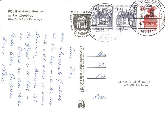 72392254 alte Postkarte Bad Alexandersbad Altes Schloss mit Kuranlage postalisch gelaufen Erhaltung siehe scans KatCode: 11110009479111