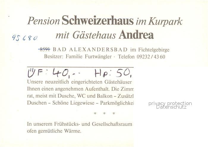 73544851 Bad Alexandersbad Cafe Pension Furtwaengler postalisch nicht gelaufen Werbekarte (keine Postkarte) Erhaltung siehe scans [FriedD77] KatCode: 11110009479111