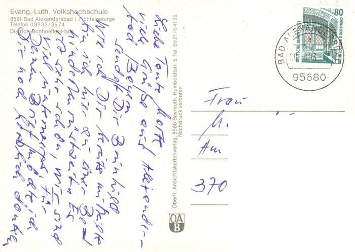 73949418 alte Postkarte Bad Alexandersbad Ev Luth Volkshochschule postalisch gelaufen Erhaltung siehe scans [WerneD78] KatCode: 11110009479111
