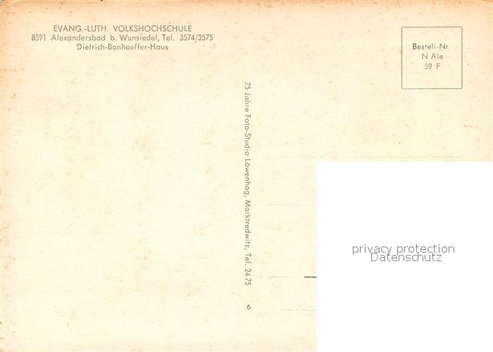 73684922 Bad Alexandersbad Evang. Luth. Volkshochschule Dietrich Bonhoeffer Haus postalisch nicht gelaufen Erhaltung siehe scans [FriedD77] KatCode: 11110009479111