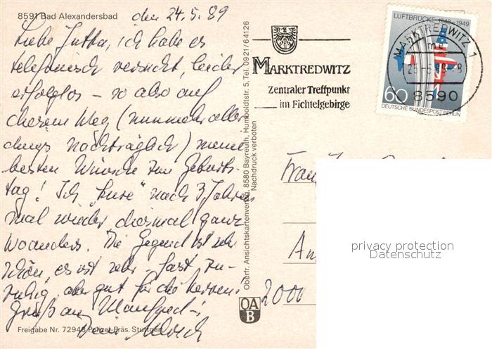 73101009 alte Postkarte Bad Alexandersbad Fliegeraufnahme postalisch gelaufen Erhaltung siehe scans [WerneD78] KatCode: 11110009479111