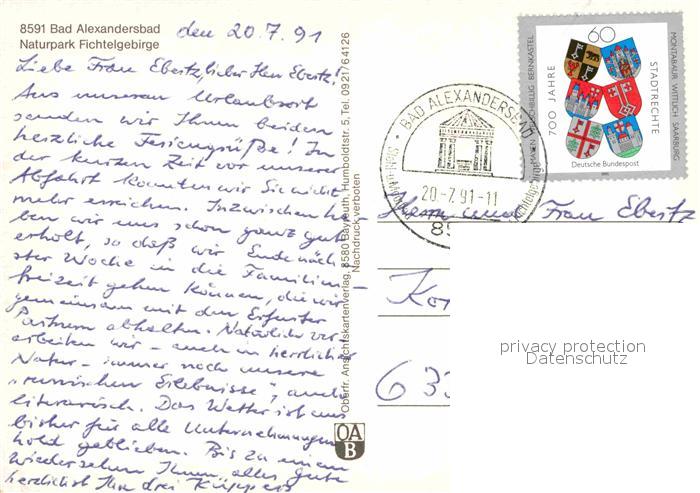72852060 alte Postkarte Bad Alexandersbad Fliegeraufnahme postalisch gelaufen Erhaltung siehe scans [NatalD47] KatCode: 11110009479111