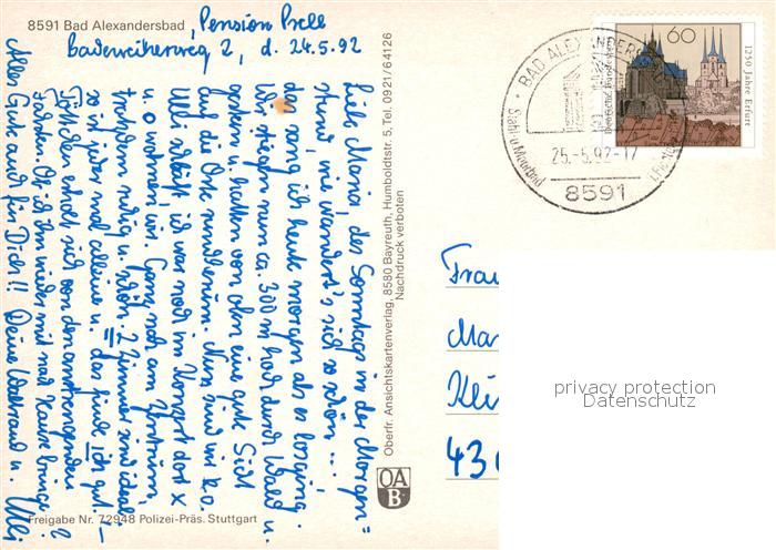 73542484 alte Postkarte Bad Alexandersbad Fliegeraufnahme postalisch gelaufen Erhaltung siehe scans [KathaD81] KatCode: 11110009479111