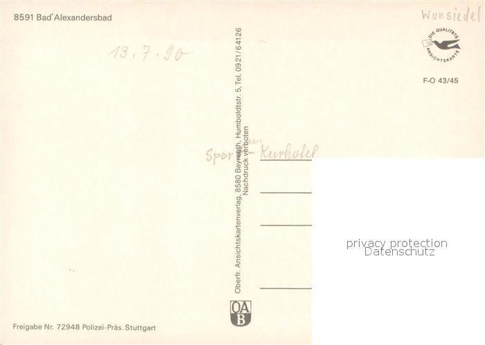 73716290 Bad Alexandersbad Fliegeraufnahme postalisch nicht gelaufen Erhaltung siehe scans [FriedD77] KatCode: 11110009479111