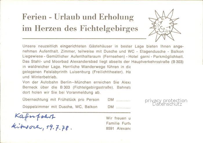 71931296 Bad Alexandersbad Gaestehaeuser Furwaengler Haus Andrea Luisenquelle postalisch nicht gelaufen Werbekarte (keine Postkarte) Erhaltung siehe scans KatCode: 11110009479111