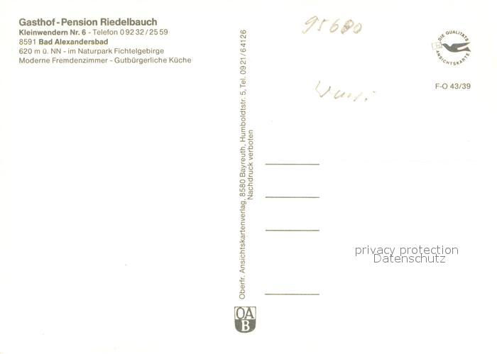 73738948 Bad Alexandersbad Gasthof Pension Riedelbauch postalisch nicht gelaufen Erhaltung siehe scans [WerneD78] KatCode: 11110009479111