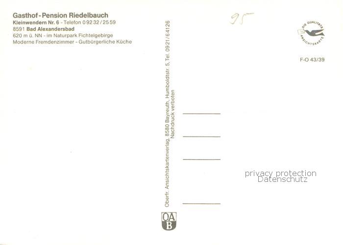 73767111 Bad Alexandersbad Gasthof Pension Riedelbauch postalisch nicht gelaufen Erhaltung siehe scans [FriedD77] KatCode: 11110009479111