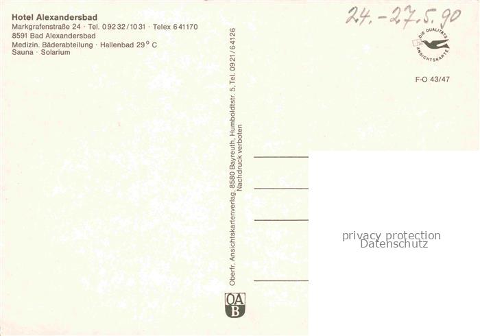 74023333 Bad Alexandersbad Hotel Alexandersbad postalisch nicht gelaufen Erhaltung siehe scans [FriedD77] KatCode: 11110009479111