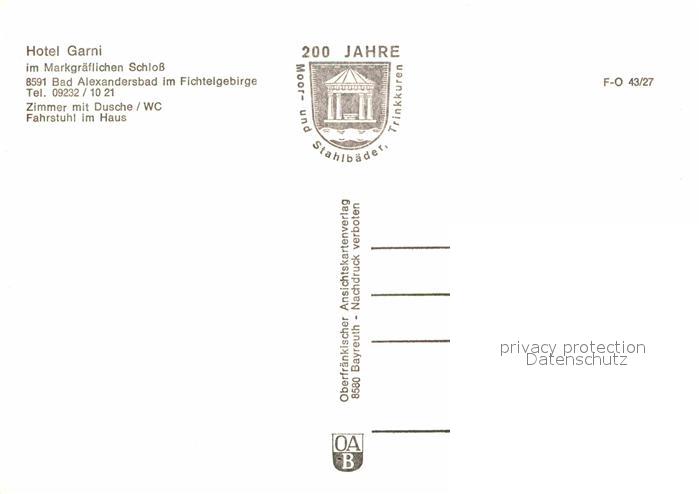72751114 Bad Alexandersbad Hotel Garni im Markgraeflichen Schloss Haberstein Felsen Luisenburg Buehne Koesseine Gipfel Fichtelgebirge postalisch nicht gelaufen Erhaltung siehe scans [FriedD77] KatCode: 11110009479111