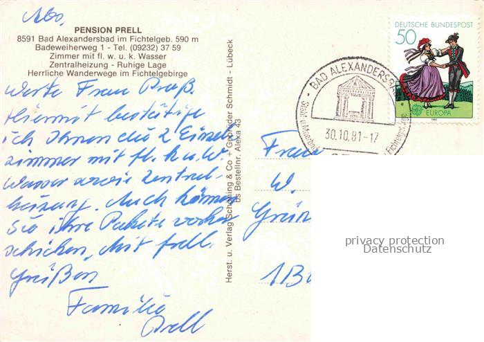 74039797 alte Postkarte Bad Alexandersbad Pension Prell Liegewiese Aufenthaltsraum postalisch gelaufen Erhaltung siehe scans [FriedD77] KatCode: 11110009479111