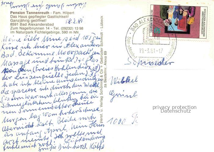 74039796 alte Postkarte Bad Alexandersbad Pension Tannenreuth Gastraum Treppenhaus Fremdenzimmer postalisch gelaufen Erhaltung siehe scans [FriedD77] KatCode: 11110009479111