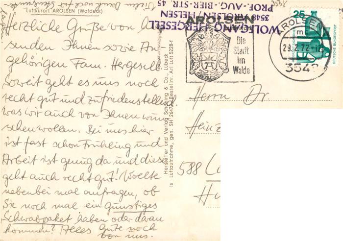 73935617 alte Postkarte Bad Arolsen Fliegeraufnahme postalisch gelaufen Erhaltung siehe scans [FriedD77] KatCode: 11110006635002