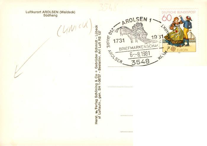 73935513 alte Postkarte Bad Arolsen Panorama Suedhang postalisch gelaufen Fliegeraufnahme Erhaltung siehe scans [FriedD77] KatCode: 11110006635002