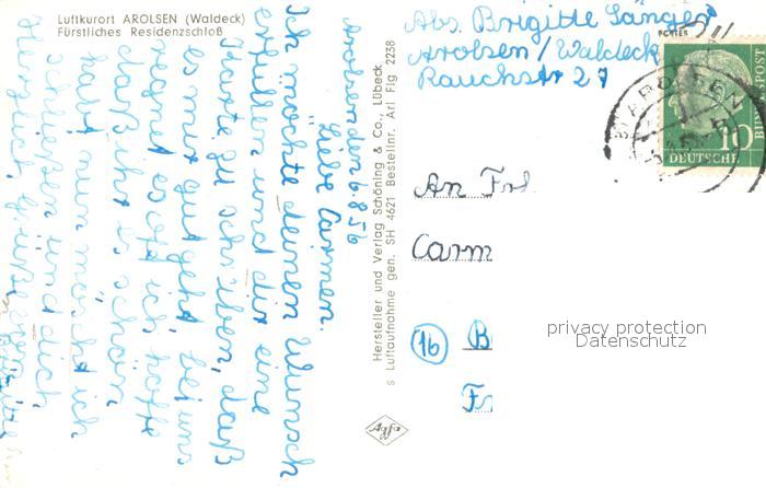 73613629 alte Postkarte Bad Arolsen Residenzschloss Fliegeraufnahme postalisch gelaufen Erhaltung siehe scans [PaolaD17] KatCode: 11110006635002