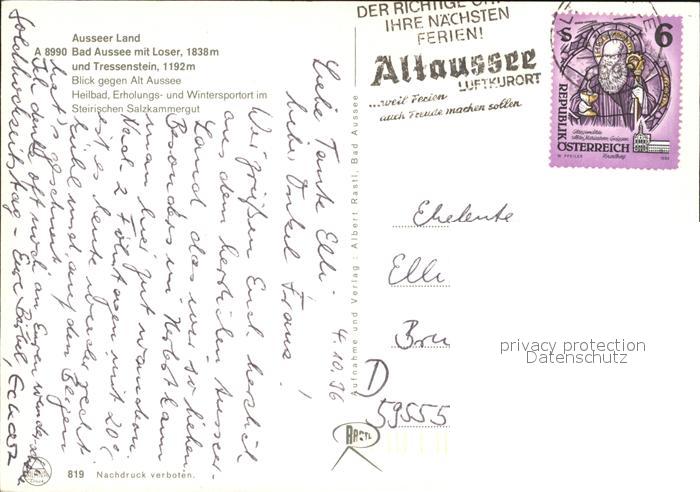 72447184 alte Postkarte Bad Aussee Steiermark mit Loser und Tressenstein Fliegeraufnahme postalisch gelaufen Erhaltung siehe scans KatCode: 11390222061207