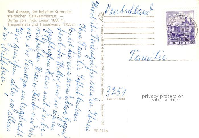 72987914 alte Postkarte Bad Aussee Steiermark Panorama Kurort mit Loser Tressenstein Trisselwand Totes Gebirge postalisch gelaufen Erhaltung siehe scans [FriedD77] KatCode: 11390222061207