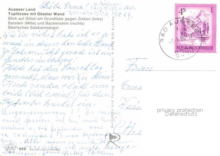 72670323 alte Postkarte Bad Aussee Steiermark Toplitzsee mit Goessler Wand postalisch gelaufen Erhaltung siehe scans [LiesaD40] KatCode: 11390222061207