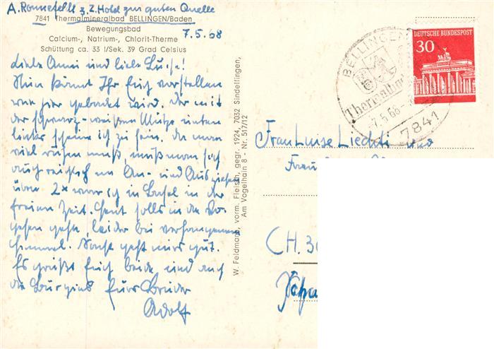 73888875 alte Postkarte Bad Bellingen Bewegungsbad postalisch gelaufen Erhaltung siehe scans [FriedD77] KatCode: 11110008336006