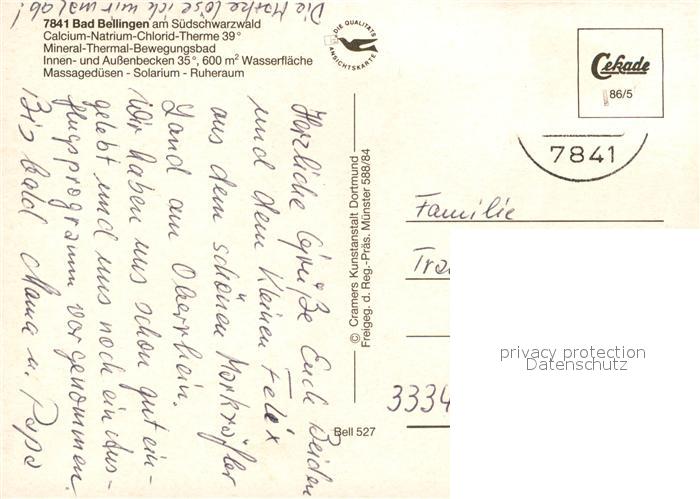 73165415 alte Postkarte Bad Bellingen Fliegeraufnahme postalisch gelaufen Erhaltung siehe scans [KathaD81] KatCode: 11110008336006