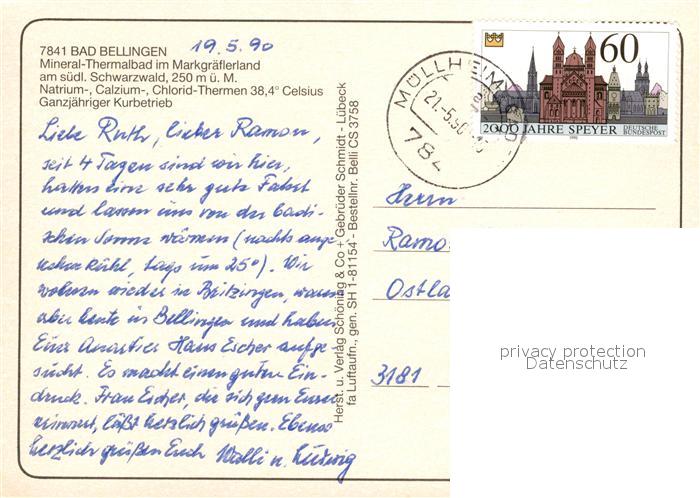73165411 alte Postkarte Bad Bellingen Fliegeraufnahme postalisch gelaufen Erhaltung siehe scans [KathaD81] KatCode: 11110008336006