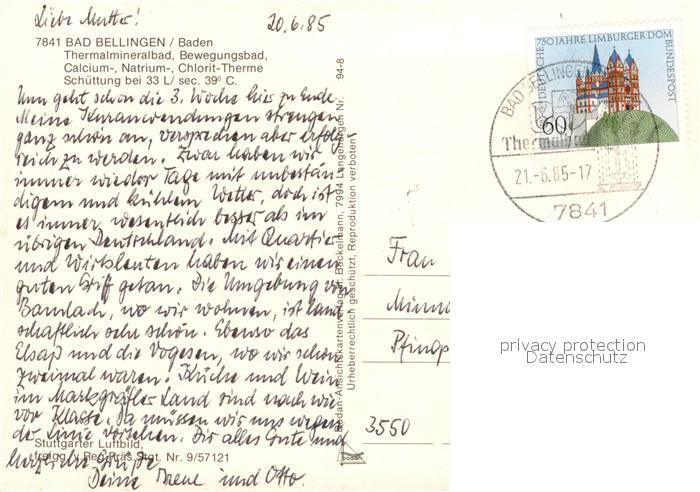 73026421 alte Postkarte Bad Bellingen Fliegeraufnahme postalisch gelaufen Erhaltung siehe scans [KathaD81] KatCode: 11110008336006
