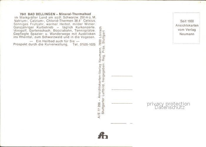 71832349 Bad Bellingen Fliegeraufnahme Mineral-Thermalbad postalisch nicht gelaufen Erhaltung siehe scans KatCode: 11110008336006