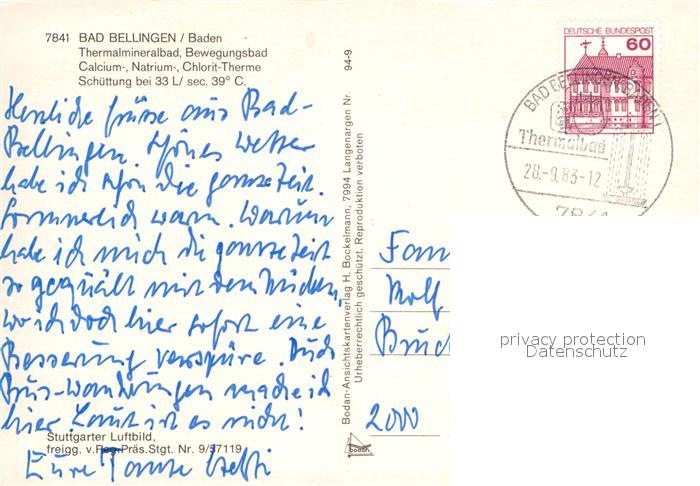 72989568 alte Postkarte Bad Bellingen Fliegeraufnahme mit Thermalbad postalisch gelaufen Erhaltung siehe scans [WerneD78] KatCode: 11110008336006