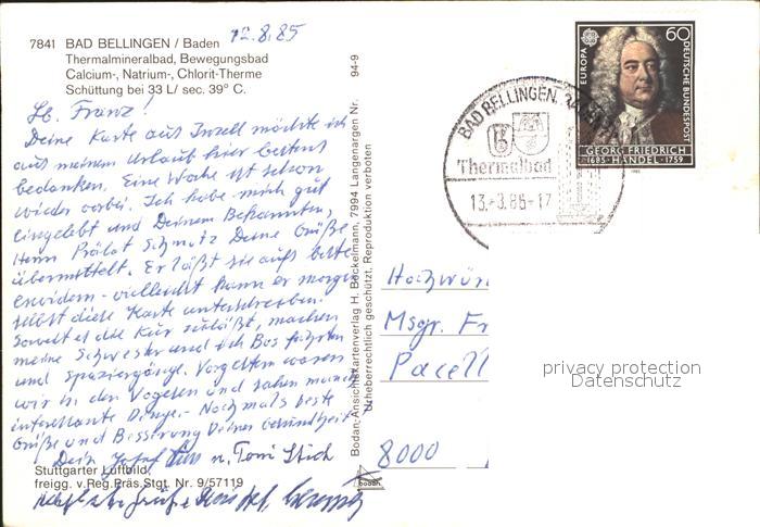 71927374 alte Postkarte Bad Bellingen Fliegeraufnahme Thermalbad postalisch gelaufen Erhaltung siehe scans KatCode: 11110008336006
