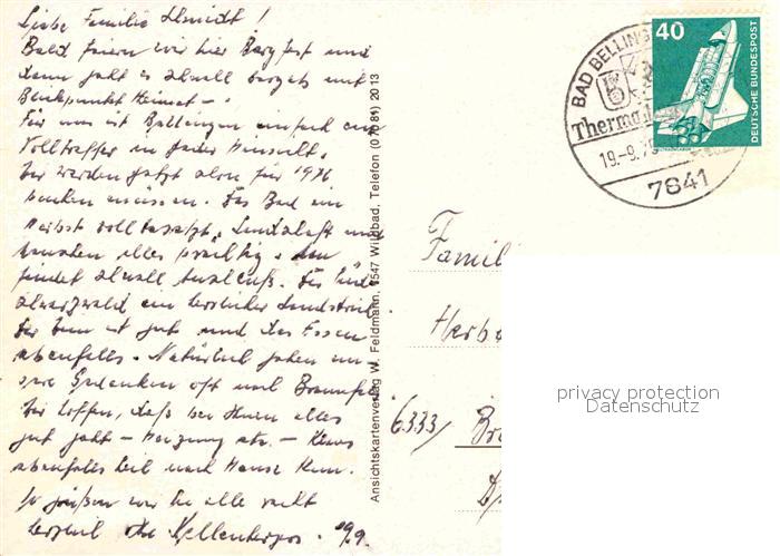 72915201 alte Postkarte Bad Bellingen Fliegeraufnahme Thermalbad Kurpark postalisch gelaufen Erhaltung siehe scans [LiesaD40] KatCode: 11110008336006