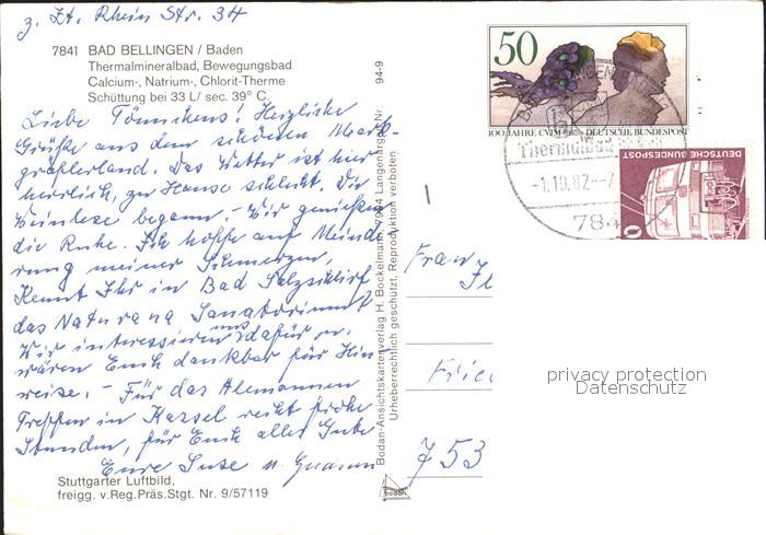 72393560 alte Postkarte Bad Bellingen Fliegeraufnahme Thermalmineralbad postalisch gelaufen Erhaltung siehe scans KatCode: 11110008336006