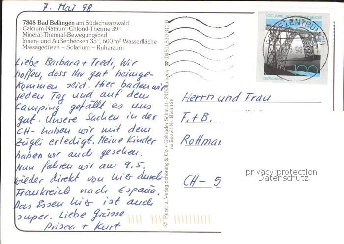 72557577 alte Postkarte Bad Bellingen Fontaene Kurpark Musikpavillon postalisch gelaufen Erhaltung siehe scans [KathaD79] KatCode: 11110008336006