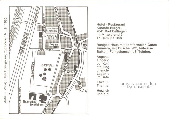 71936320 Bad Bellingen Hotel Restaurant Kurcafe Burger postalisch nicht gelaufen Werbekarte (keine Postkarte) Erhaltung siehe scans KatCode: 11110008336006