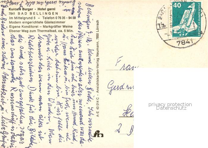 73744984 alte Postkarte Bad Bellingen Kurcafe Burger Gaststube Park Fontaene postalisch gelaufen Erhaltung siehe scans [WerneD78] KatCode: 11110008336006