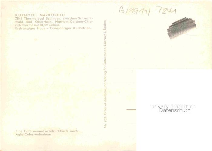 72863228 Bad Bellingen Kurhotel Markushof postalisch nicht gelaufen Erhaltung siehe scans [LiesaD40] KatCode: 11110008336006