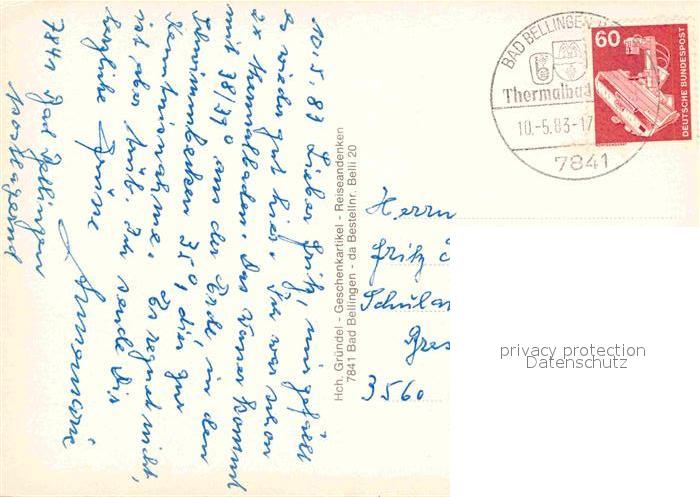 72896846 alte Postkarte Bad Bellingen Kurpark Rheinweiler Schloss Bamlach Sanatorium Sankt Marien postalisch gelaufen Erhaltung siehe scans [KathaD81] KatCode: 11110008336006